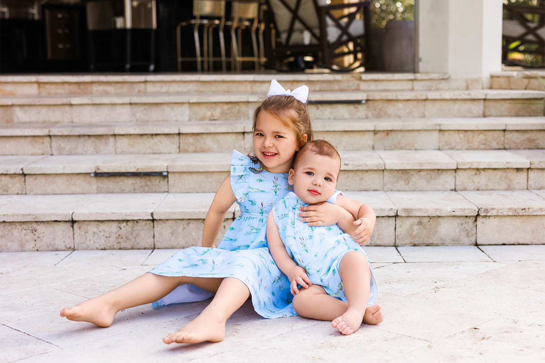 Let your little gator crawl, play, and explore in the ‘Gator Games’ Organic Muslin Shortall!